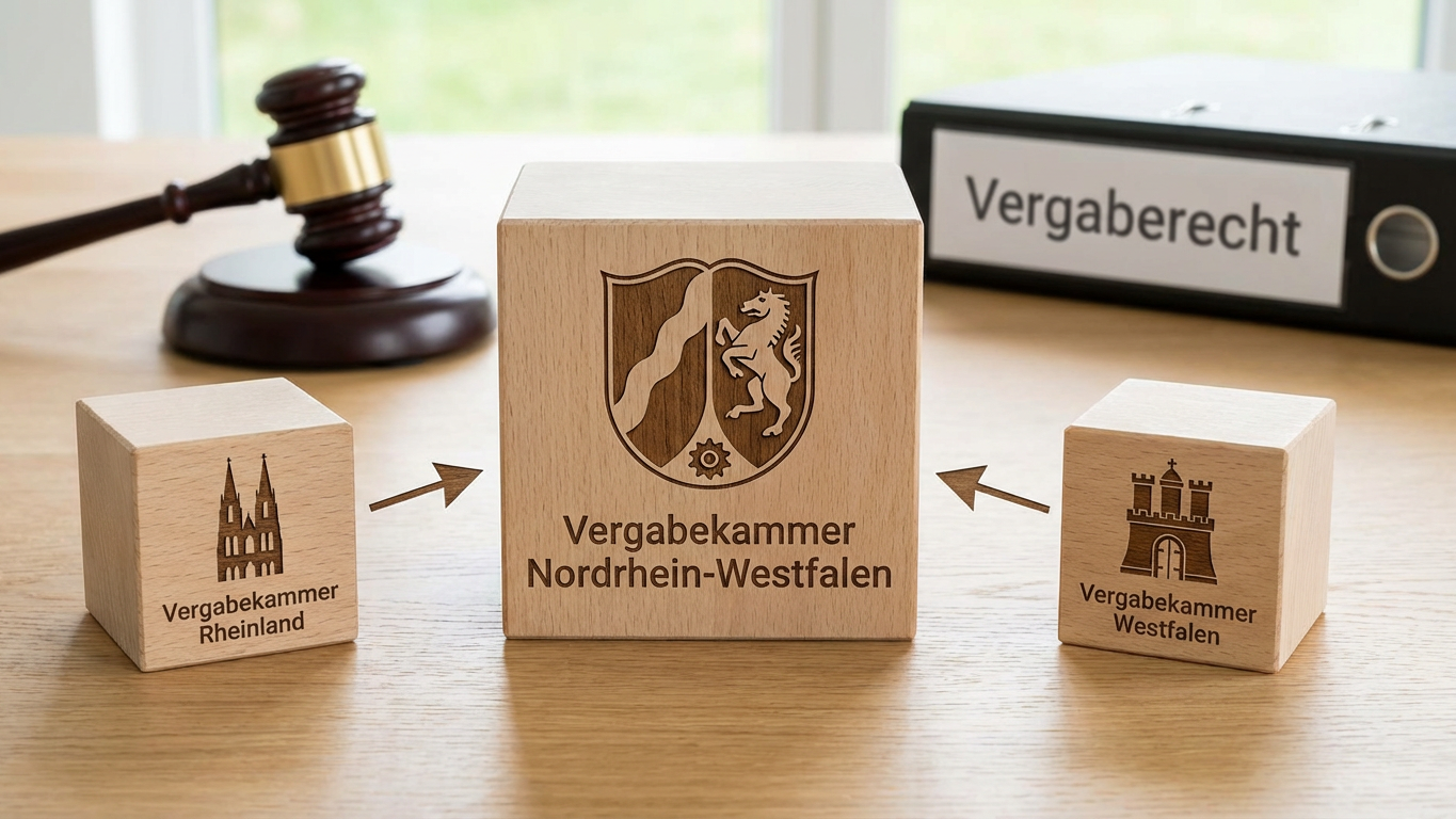 Seit dem 01.01.2026 übernimmt die Vergabekammer Westfalen zusätzlich die Verfahren, die neue Nachprüfungsanträge gegen Auftraggeber mit Sitz im Regierungsbezirk Düsseldorf betreffen. Die Vergabekammer Rheinland ist in der ersten Hälfte des Jahres 2026 nur noch für neue Nachprüfungsanträge aus dem Regierungsbezirk Köln zuständig. Bereits anhängige Verfahren verbleiben bei der jeweils zuständigen Kammer.